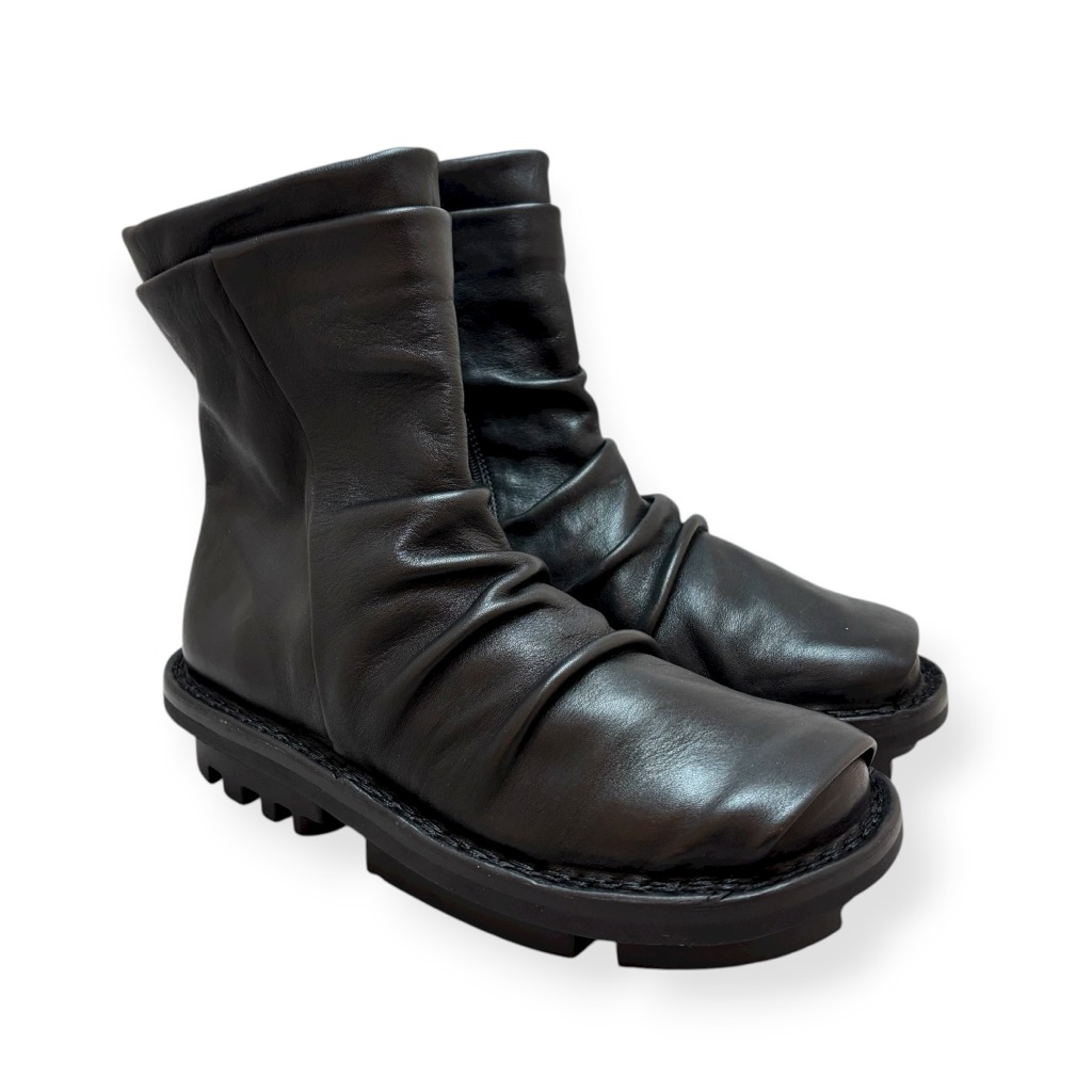 【送料無料】 柔らかい上質な革だからこそ表現できる、シャーリングが印象的なブーツ trippen[トリッペン]/JUICE-SAT252[ジュース]/BLK-BK TCソール ブーツ ショートブーツ 内側ジッパー ブラック 黒 シンプル レディース レザー 本革 靴