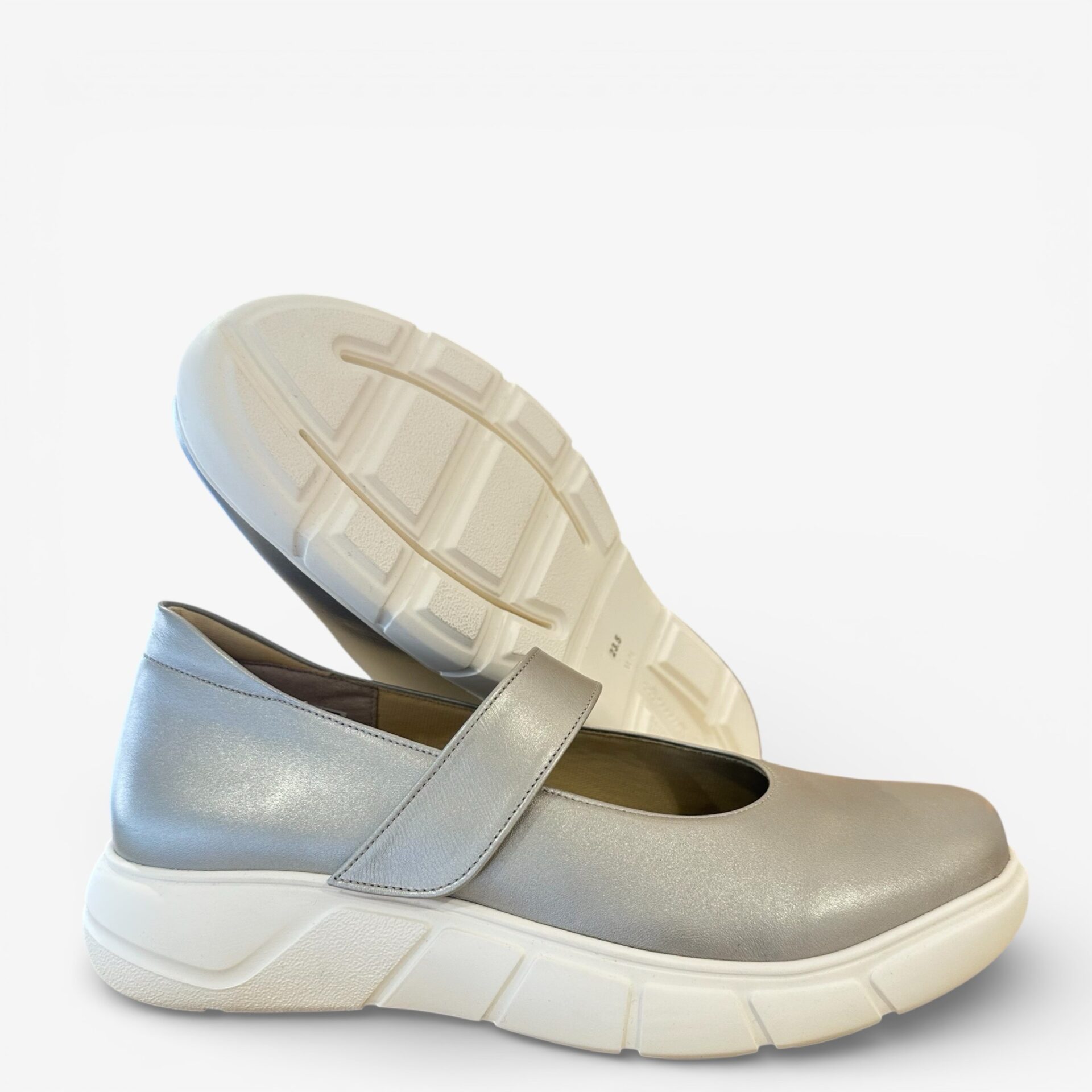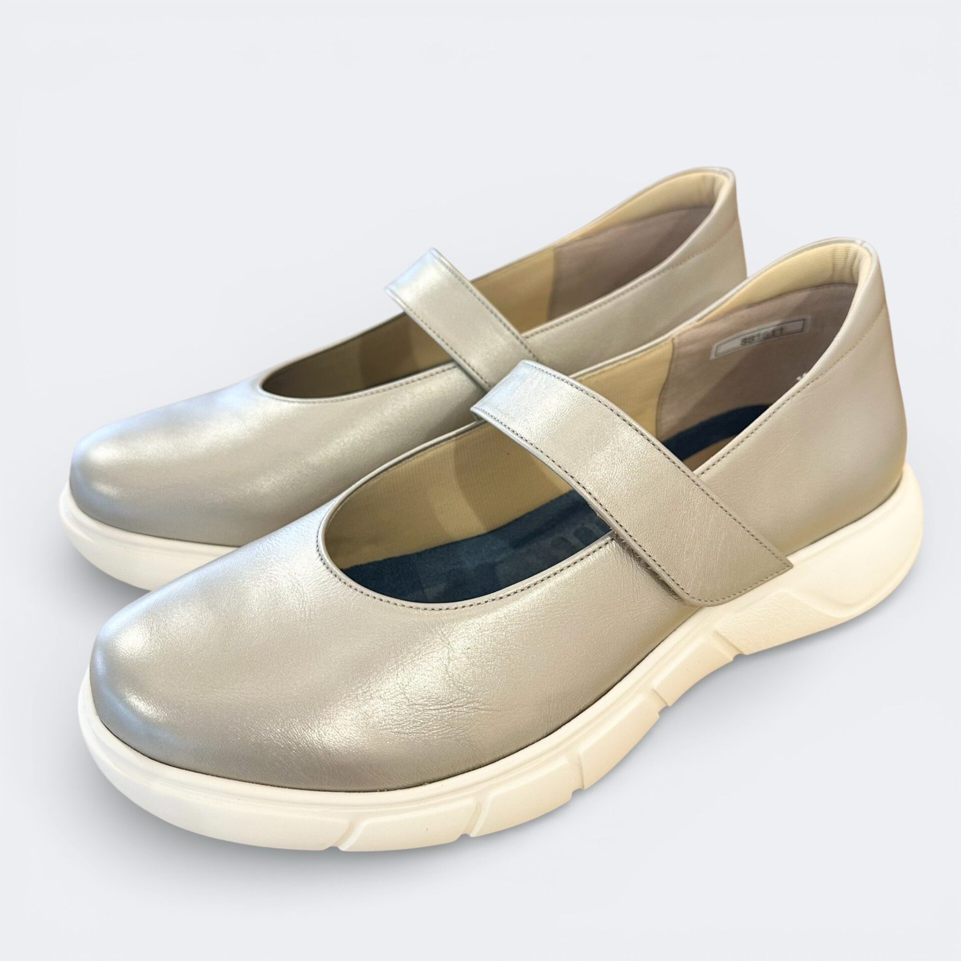 ワンベルトのシンプルなストラップシューズ。アッパーは足当たりの良い柔らかい牛革を使用。ストラップはワンタッチのベルクロで簡単に脱ぎ履きできます。ライニングには足当たりの良いウレタンスポンジを採用。インソールはスポンジクッションで取り外しも可能。アウトソールは全体に厚みを付けた軽量ソールでクッション性に優れます。スニーカーライクな履き心地で長時間のお出かけも安心です。