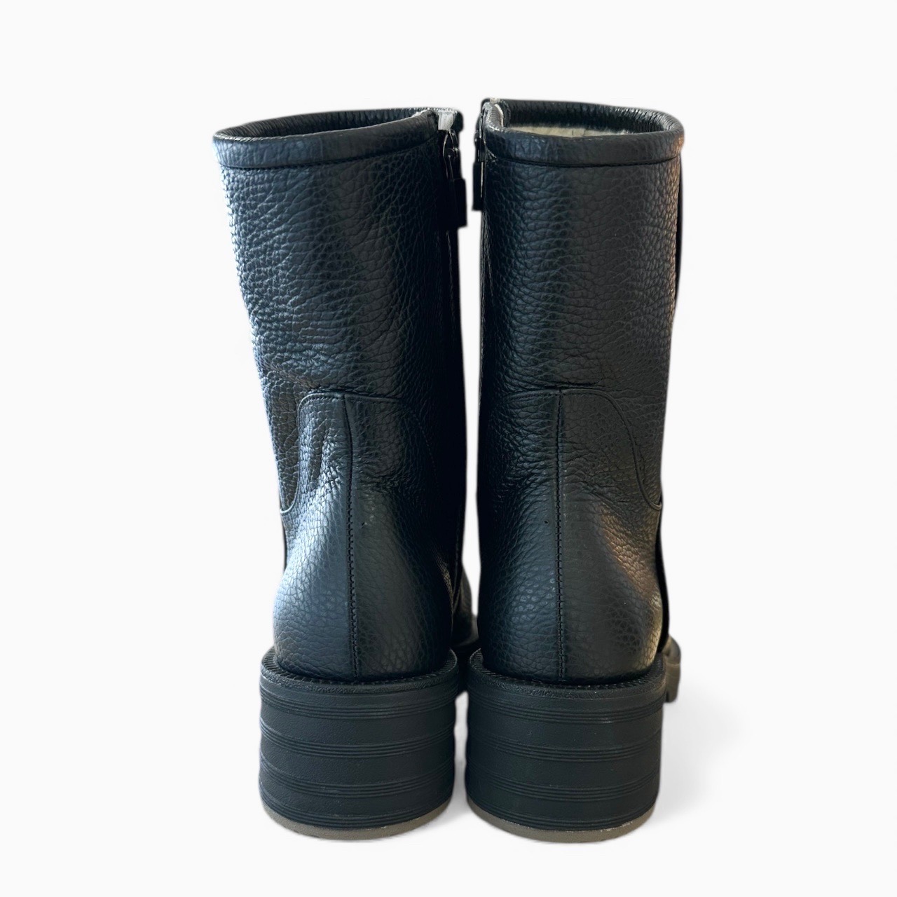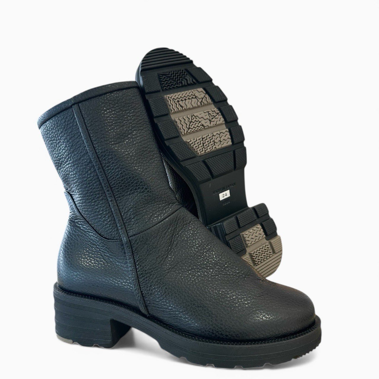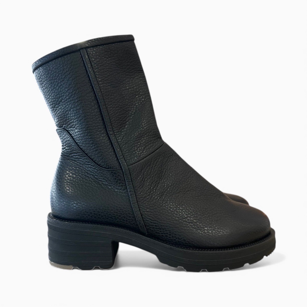 内側ファスナーになったボアインのショートブーツ。アッパーは全体にシボのある非常に柔らかく足馴染みの良い牛革を使用。インソールもボア付きのカップインソール。一体成型のやや厚底になったアウトソールは軽量で地面からの衝撃を吸収します。前部に25mmの厚みを持たせ自然にスタイルアップ。ジッパー付きで脱ぎ履き簡単。寒い季節も快適におしゃれコーデを楽しんでいただけます。