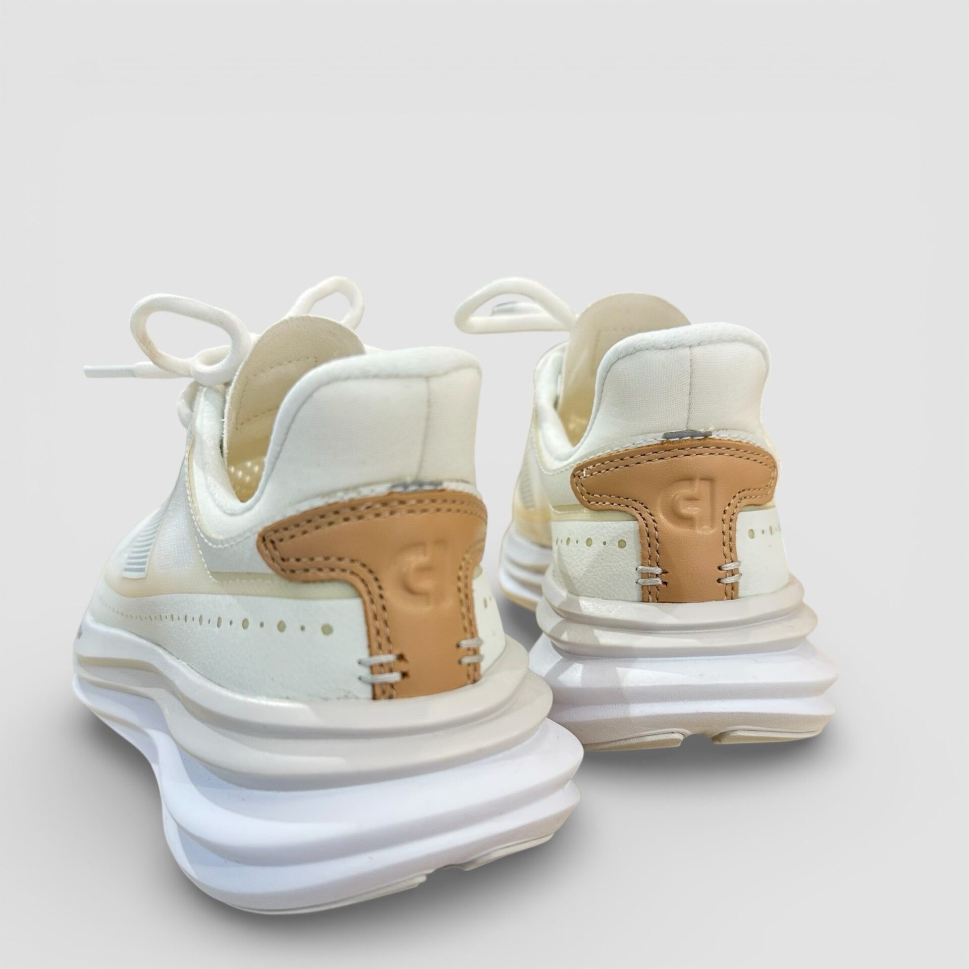 スタイリッシュなコンフォート仕立てのスニーカー。アッパーはファブリックと牛革のコンビ素材。スリップオンスタイルで脱ぎ履き簡単。スポーツを楽しむ際やよりフィット感を高めたい時などはヒモで調整も可能。円弧状の彫刻的なミッドソールとラバーアウトソールが自然な踏み出しを実現します。個性的な意匠のアウトソールは超軽量でクッション性に優れ長時間の使用でも安心です。インソールはカップインソールで取り外し可能。お好みのインソールとの取り換えもできます。