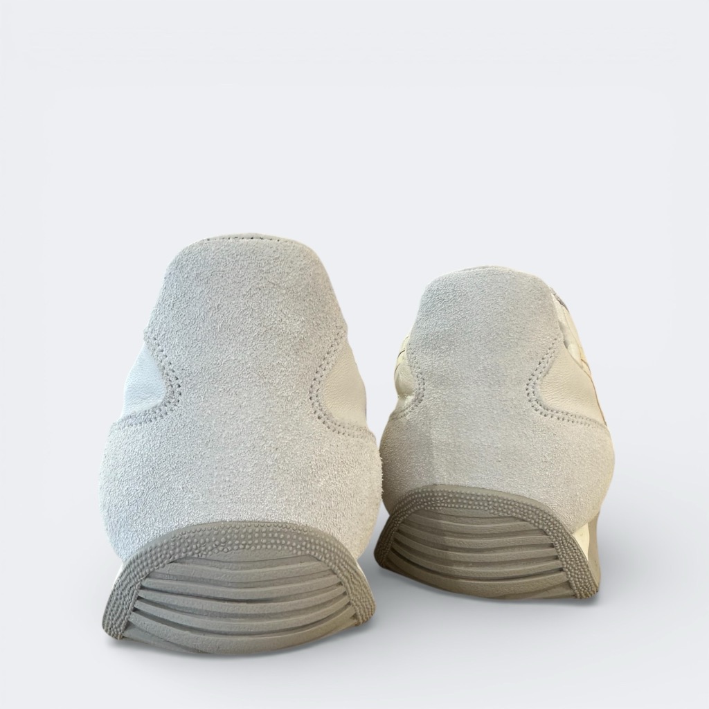 足に自然に馴染む軽量でしなやかなシープレザーが無理なくフィット。履き始めから快適さを感じられます。長時間の着用でもストレスが少なくマラソンらしい軽快さをしっかり継承しています。クッション性に優れたソールユニットと相まり長時間歩行でも疲れにくい仕上がり。ショッピングや旅行でも頼れる軽量設計です。スポーツ由来の機能美に上質素材を掛け合わせた一足。オールシーズンお使いいただけます。