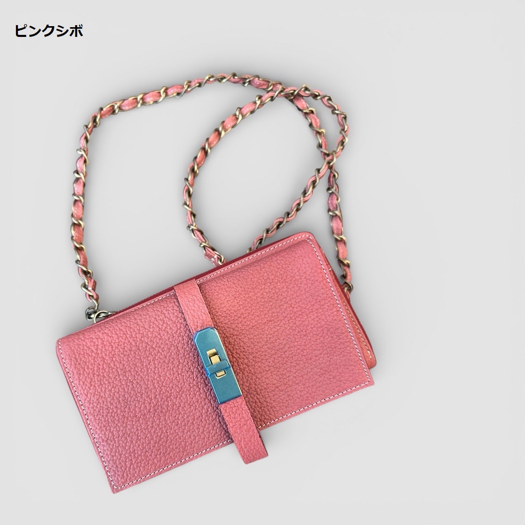 そのままお財布としても使えるショルダーバッグ。牛革使用。柔らかい素材で使い込むほどに味が出ます。
