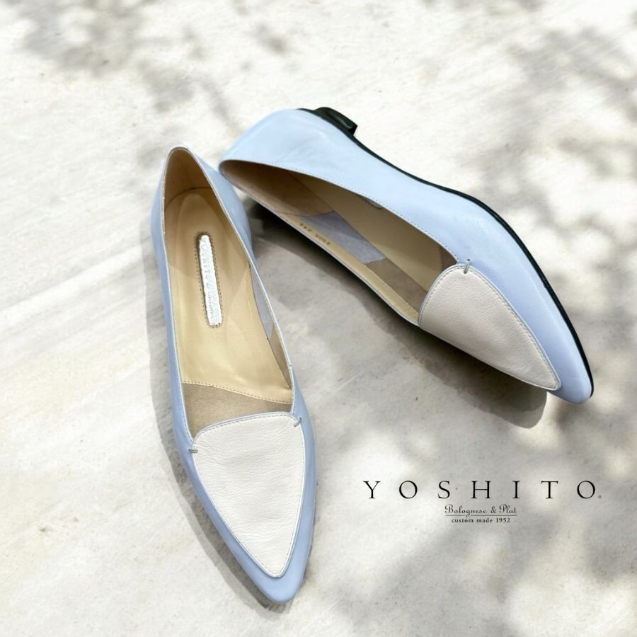 【送料無料】2026春夏新作 YOSHITO ヨシト パンプス ローヒール モカ コンビ フラットシューズ 本革 靴 8905 lbuc