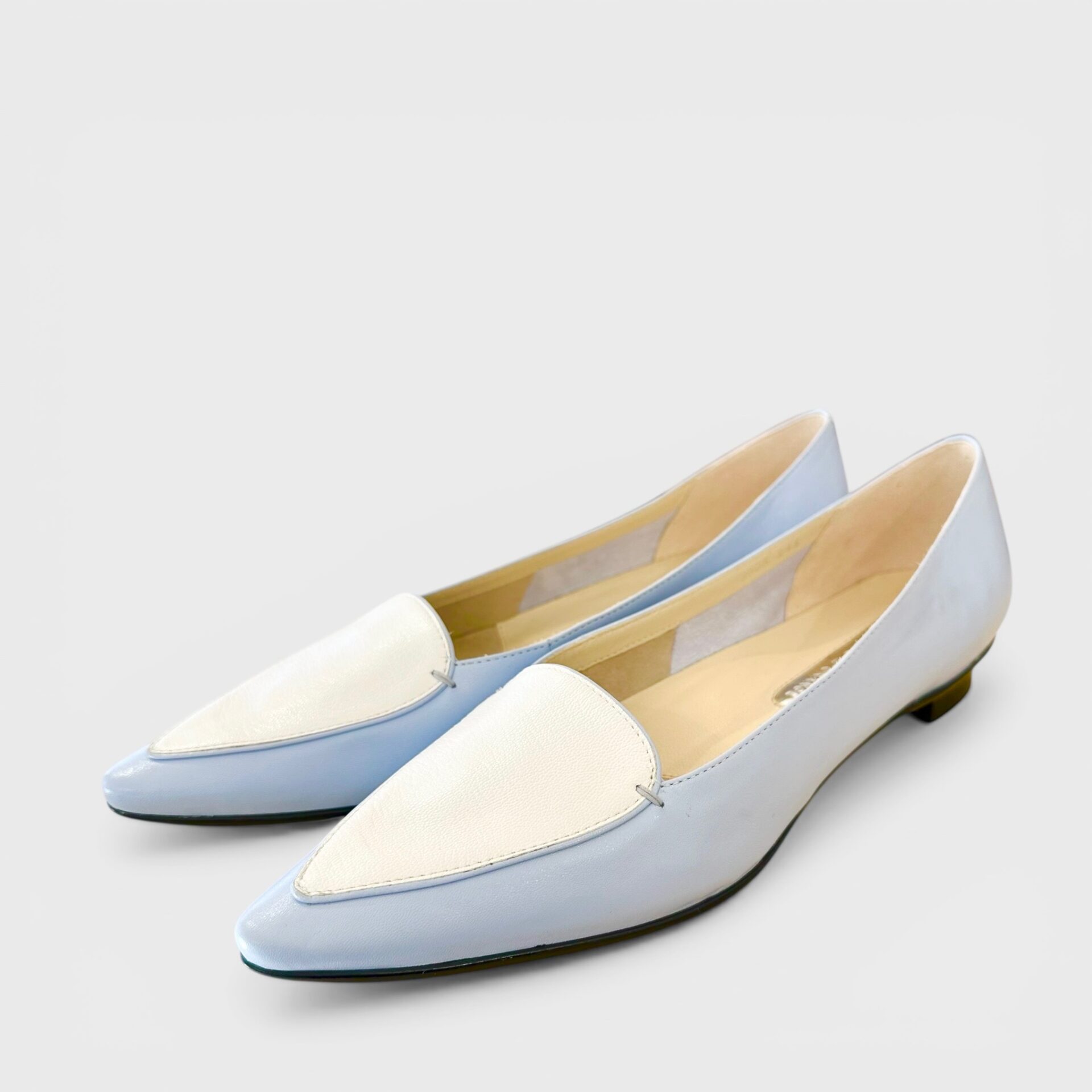 上品なコンビカラーのローヒールパンプス。アッパーはきめが細かく柔らかい本革を使用。足当たり・足馴染み共に非常に良いです。インソールにはクッション入り。サッと履けますが底の返りが良く安心のホールド感です。アウトソールはグリップのよく効くモールドソール。長歩きでも快適な履き心地。きちんと感があり品の良いデザインですがデイリーにカジュアル使いもできる登場機会の多い一足です。