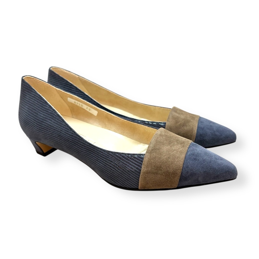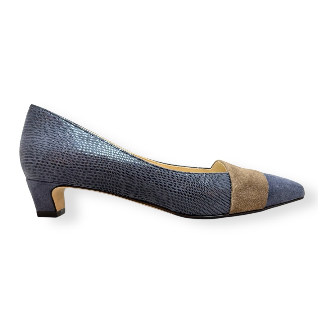 人気のカラーブロックパンプスが3cmヒールで登場。アッパーは本革素材のコンビネーション。足馴染みが非常に良いです。インソールにはクッション入り。浅ぐりですがボロネーゼ製法で母指球を包み込み長時間の使用でも安心です。本底前部に滑り止めのラバーを張り付けた革底仕様。印象的な足元を演出しお呼ばれなど大切な場面でも活躍します。カジュアル対応も可能で受けの広いデザインです。