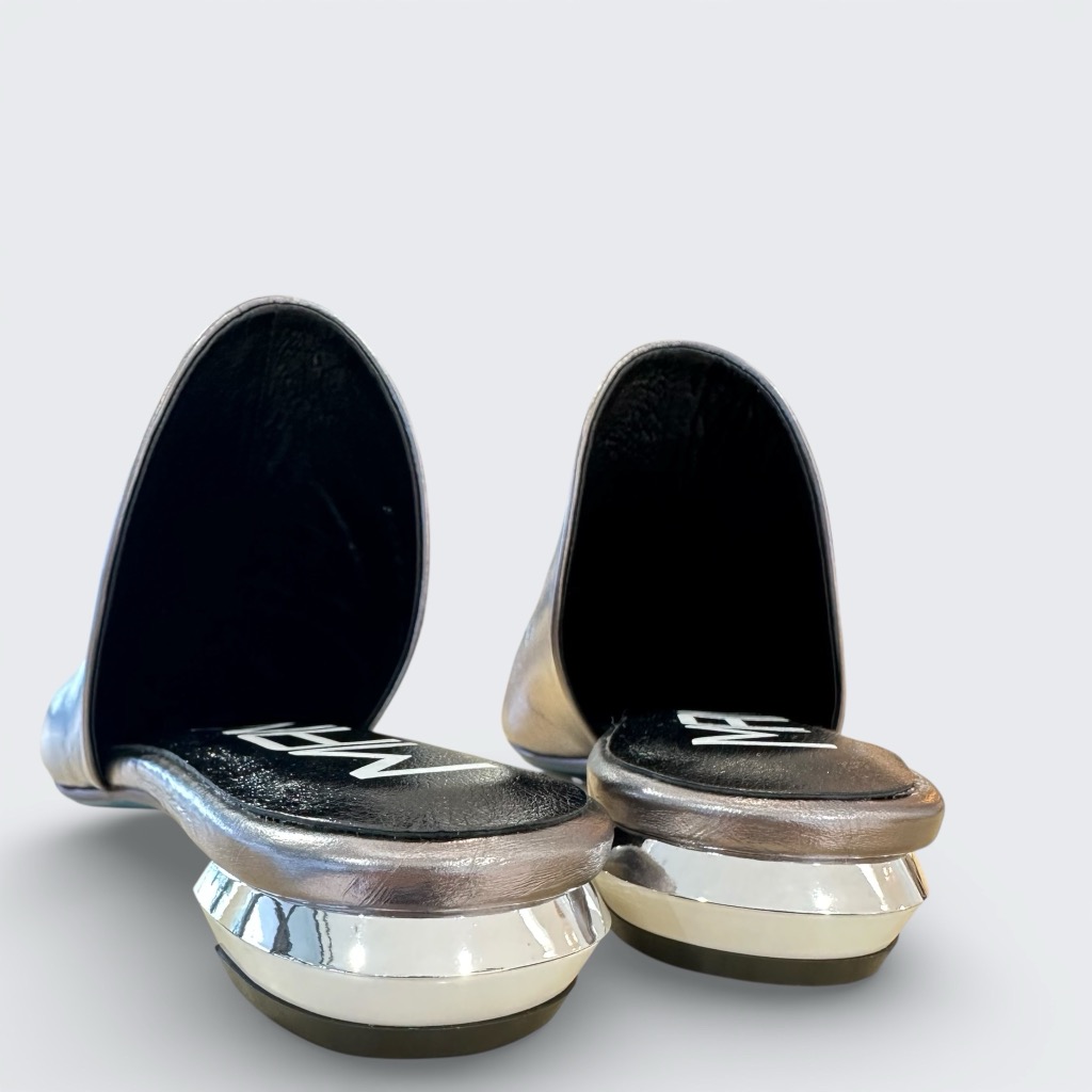 定番ふかふかバブーシュの木型を使用したミュール。アッパーは足馴染みの良い本革を使用。インソールにはふかふかのクッション入り。サッと履けますがホールド感が良くパカパカしません。細く見えますが外反母趾の方でも安心の履き心地。手をかけず簡単に脱ぎ履きできコーデのポイントになるおしゃれなミュールです。