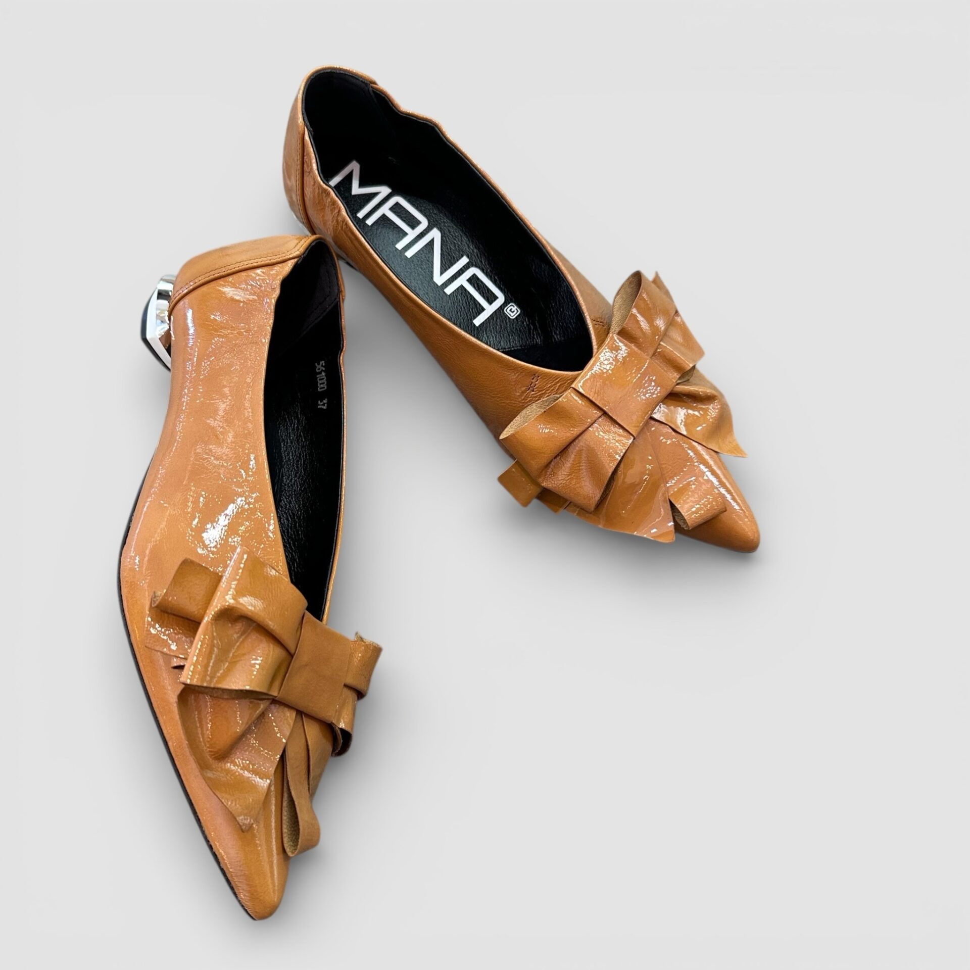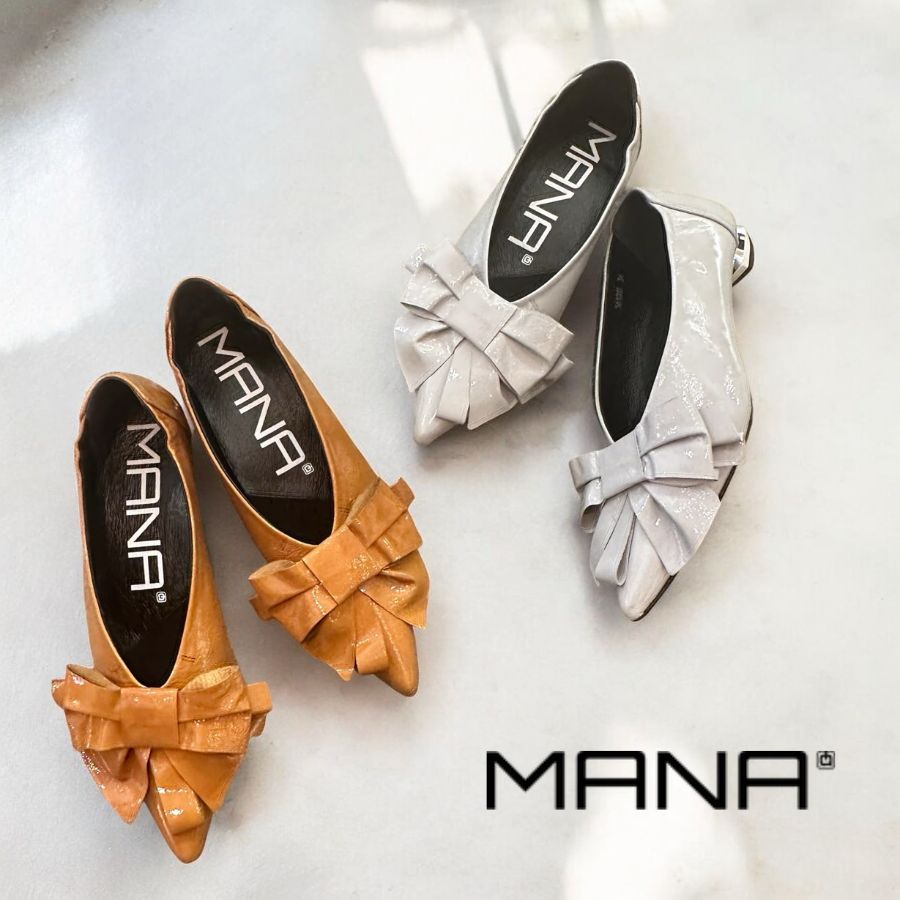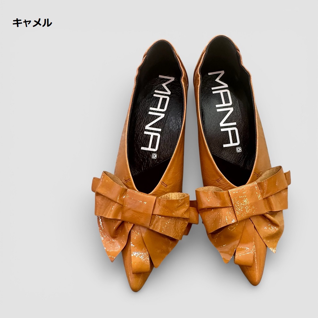 【送料無料】2026春夏新作 MANA マナ パンプス ビッグ リボン ポインテッド エナメル 本革 靴 561000