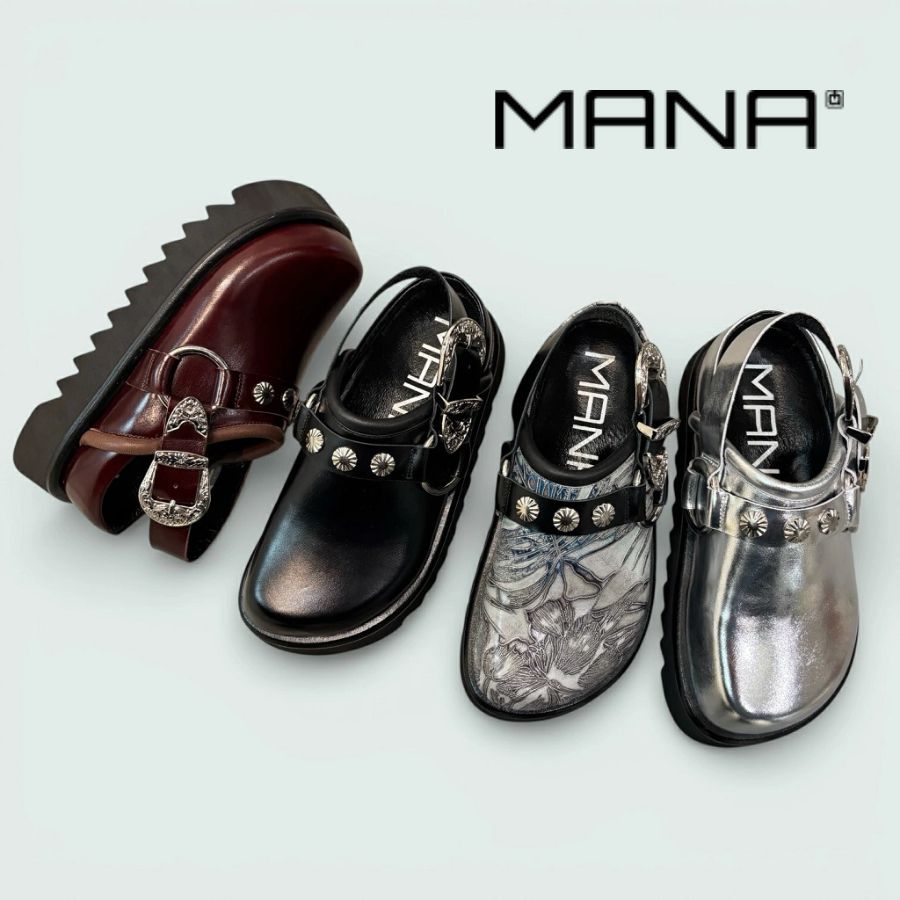 【送料無料】2026春夏新作 MANA マナ オーネイト サボ シューズ バック ベルト ウエスタン 本革 靴 563000