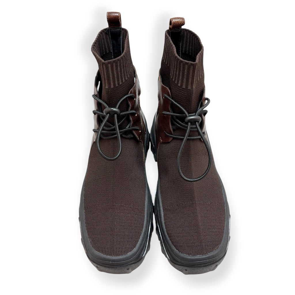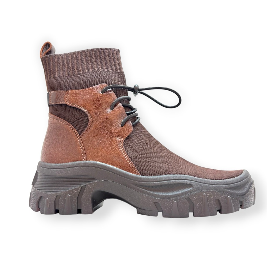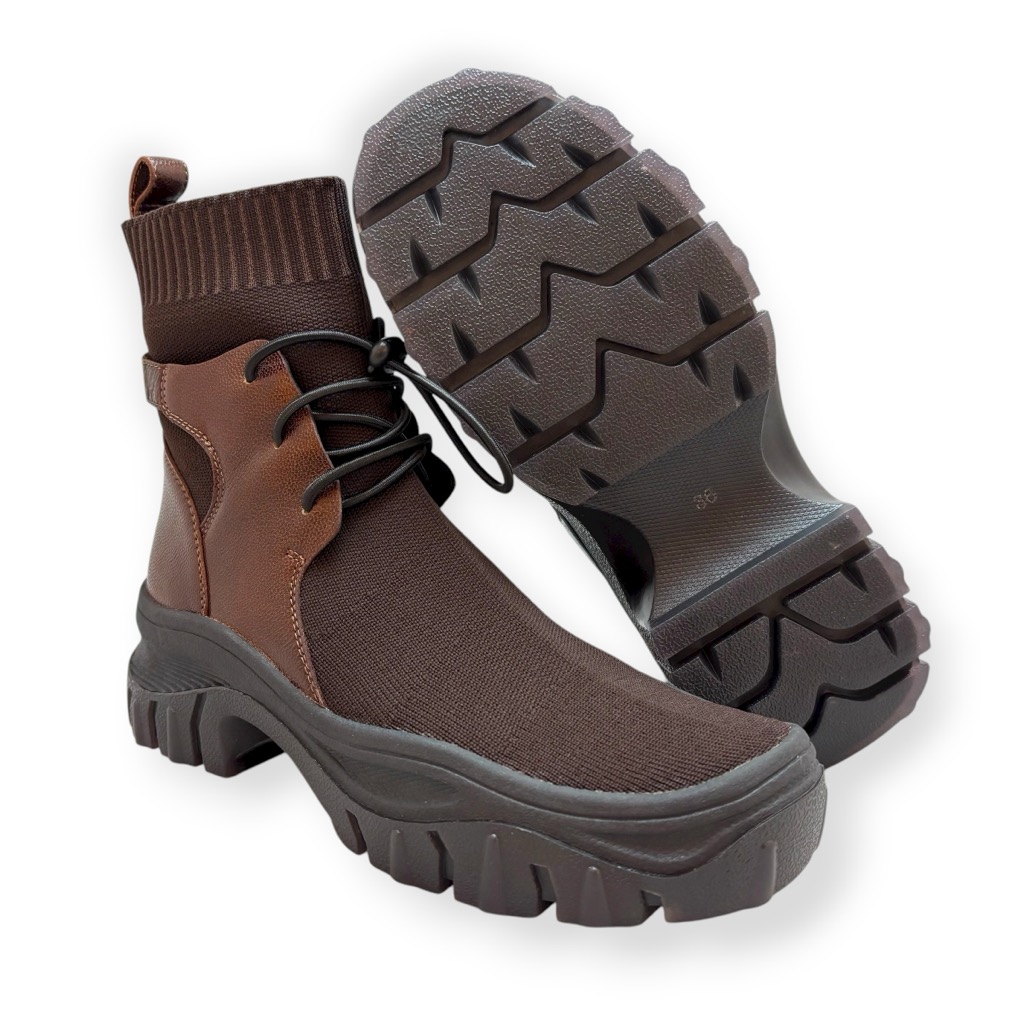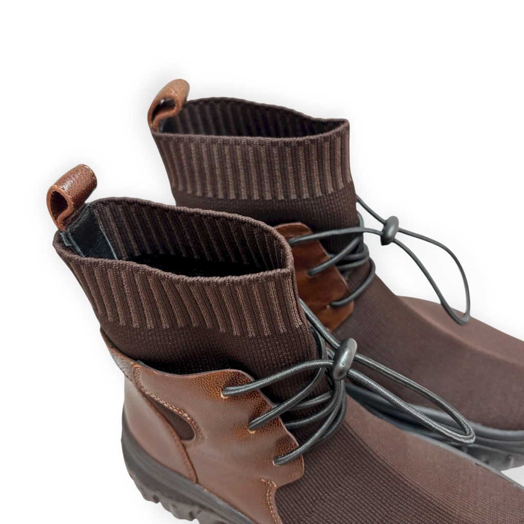 人気の定番ニットブーツ。アッパーは伸縮性のあるニットと本革ゴートのコンビ。インソールはカップインソールでクッション入り。長時間の使用でも楽ちん。ニットは程よく抑えが効きしっかりホールドしてくれてずるずるしません。人気の厚底ソールはグリップ性に優れます。気軽に使えるデザインですがカジュアルになり過ぎない色々なシーンで使えます。