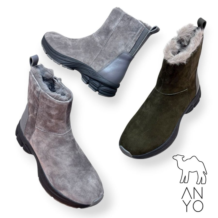 【送料無料】2025秋冬新作 ANYO エーエヌワイオー ファー ショート ブーツ スニーカー ファスナー 撥水 本革 靴 2440083