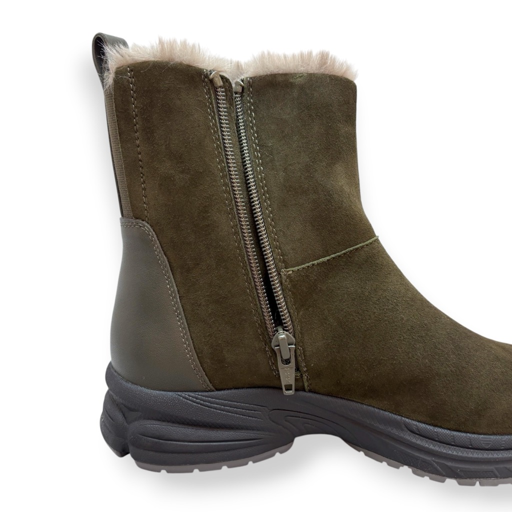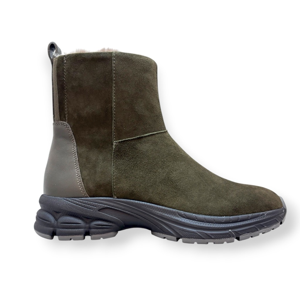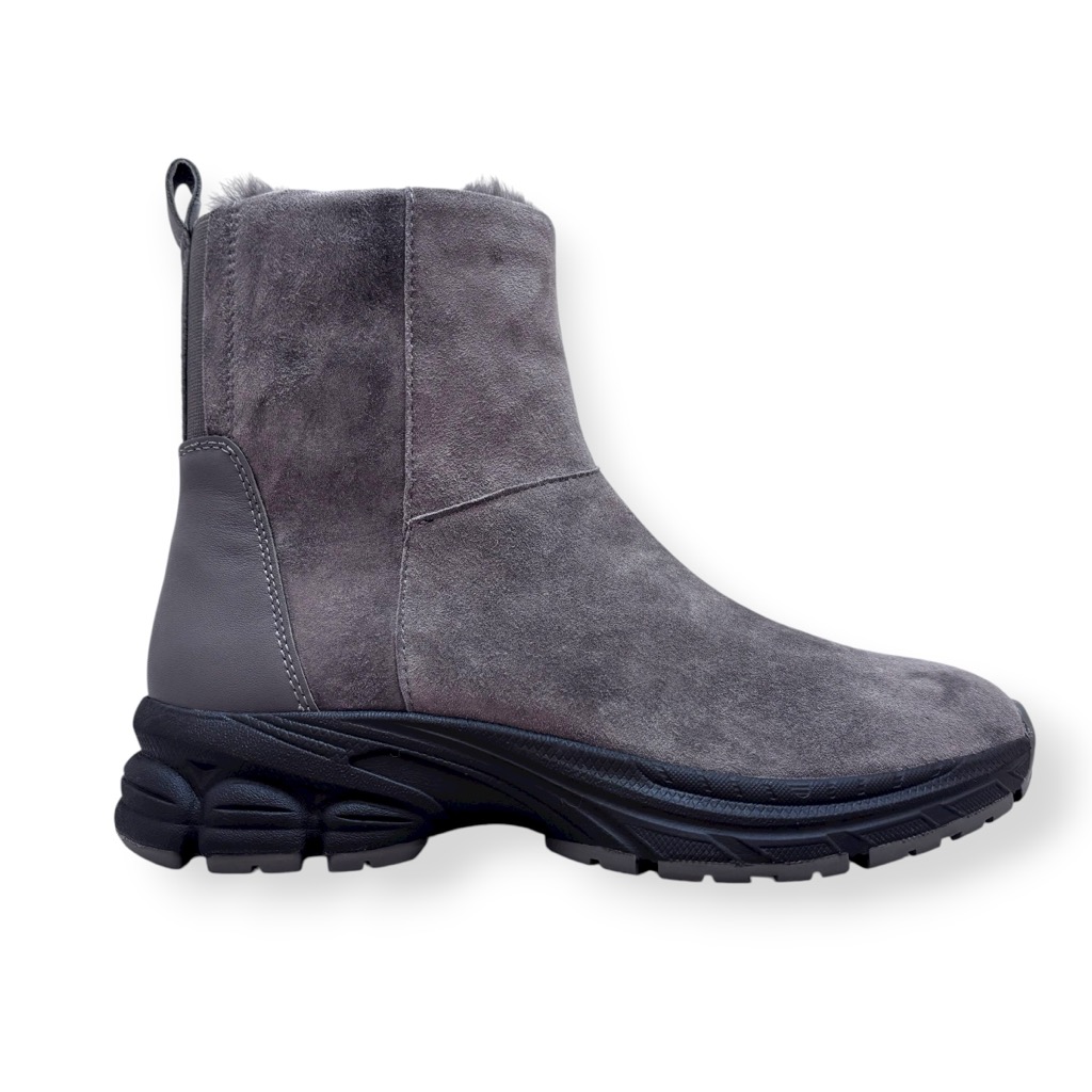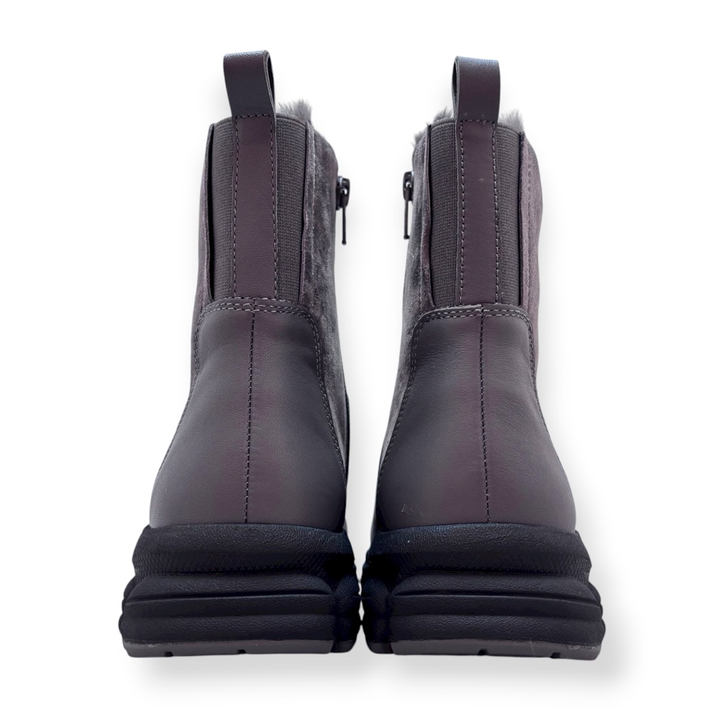 ファーライニングで温かく雨でも履けるジップアップのショートブーツ。アッパーは柔らかい起毛素材の牛革と羊革のコンビ。撥水加工してあり少々の雨降りでもお使いいただけます。内側ファスナーで脱ぎ履き簡単。インソールには取り外しできるカップインソールを採用。お好みのインソールと取り換えも可能。ソールはグリップがよく効き滑りにくくクッション性に優れたスポーツソール仕様。軽量でノンストレスの履き心地。おしゃれも犠牲にしない暖かく実用性に富んだブーツです。