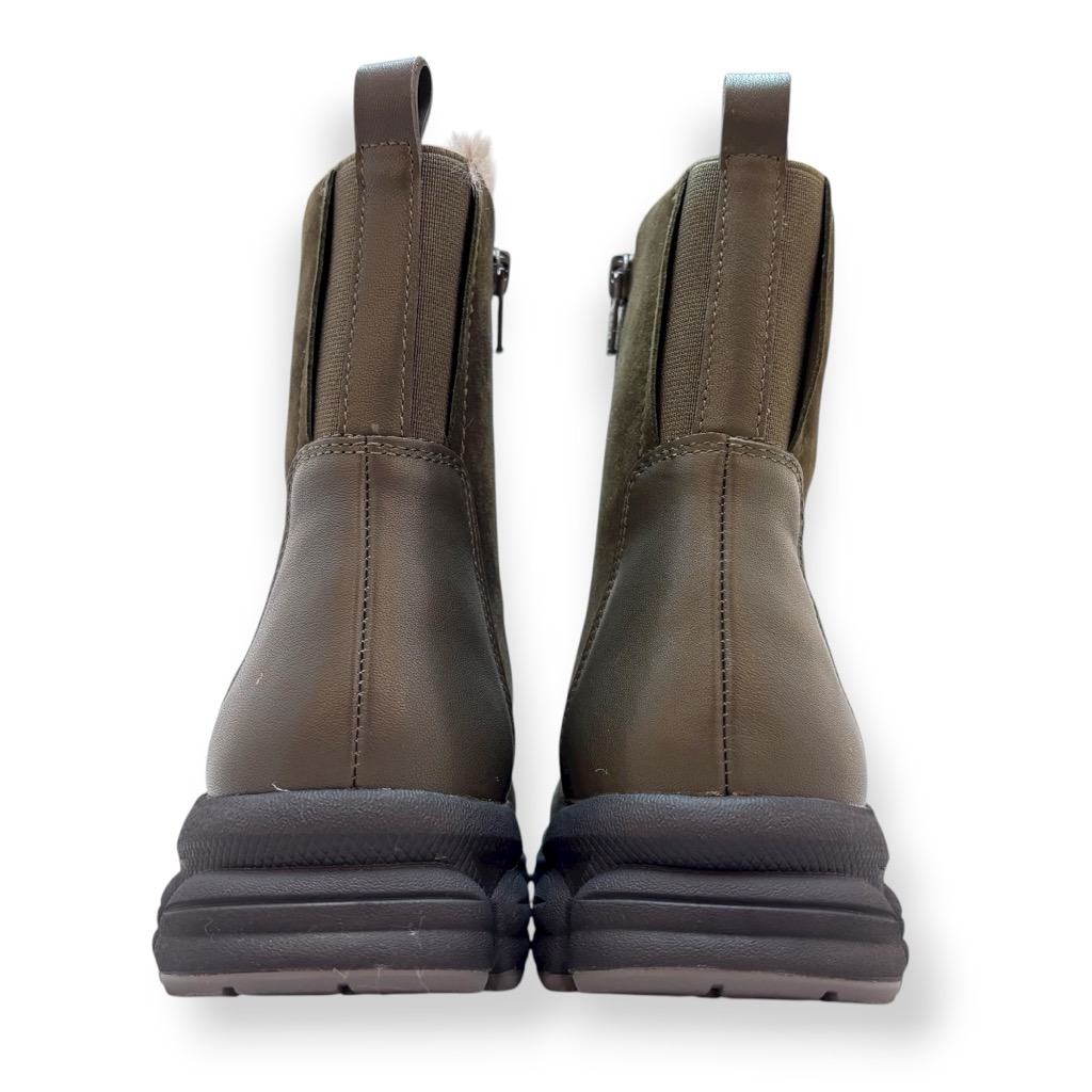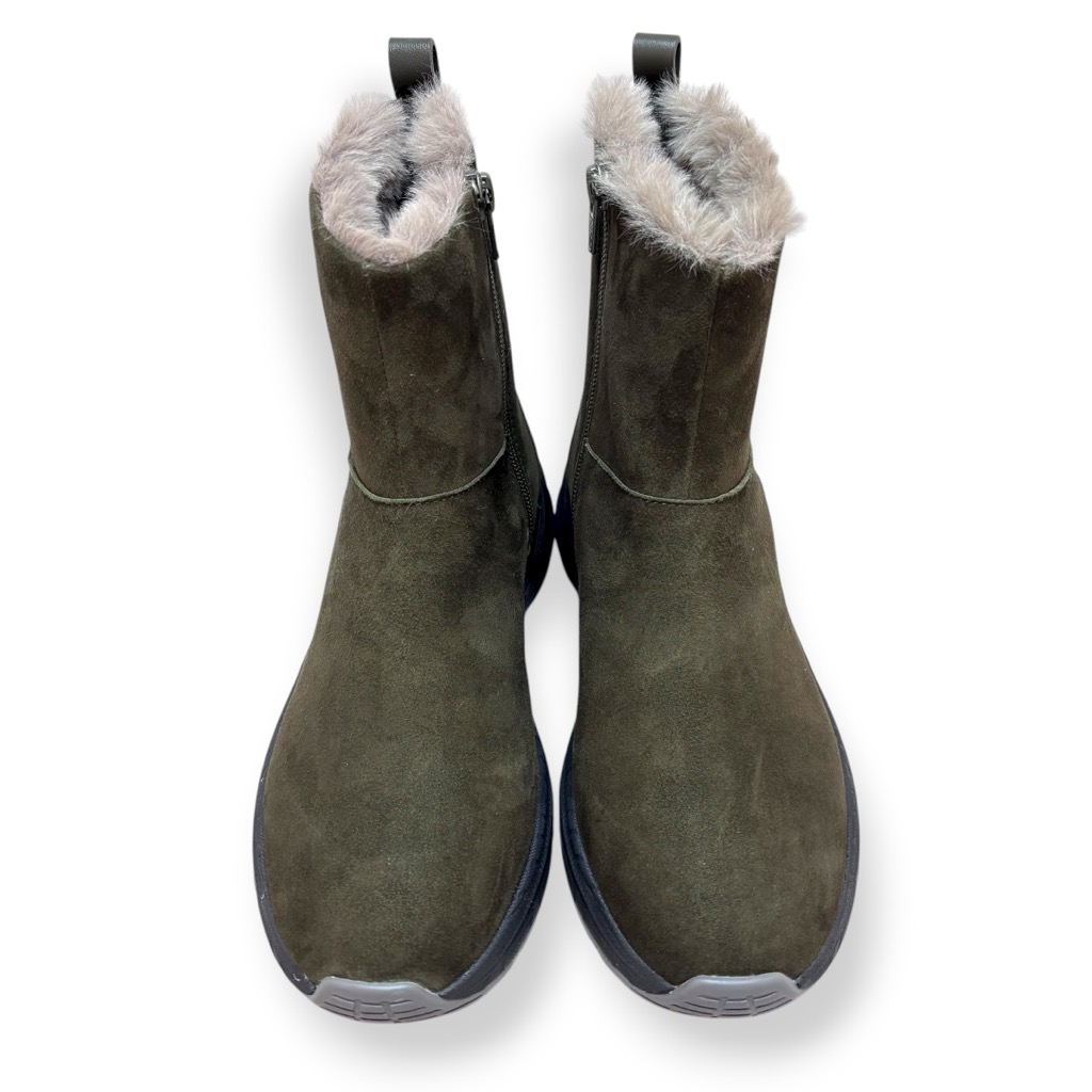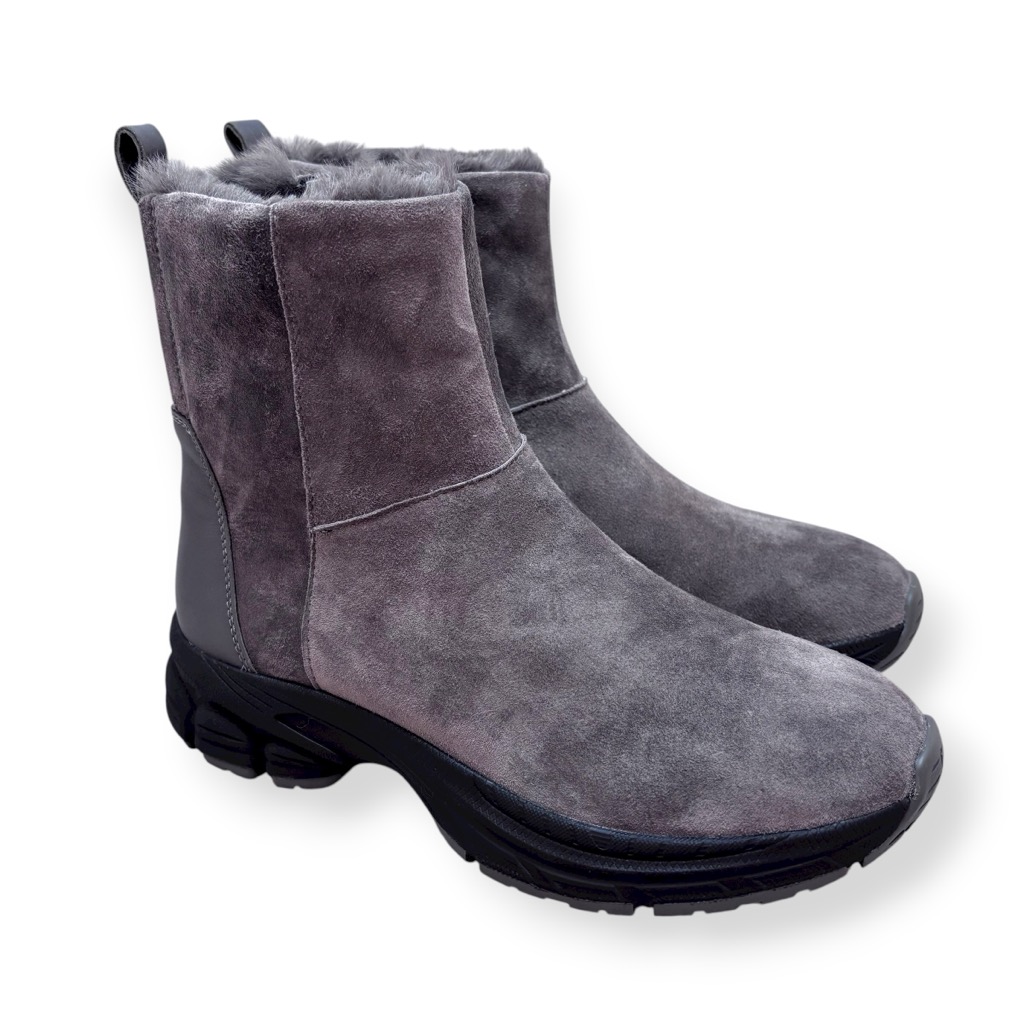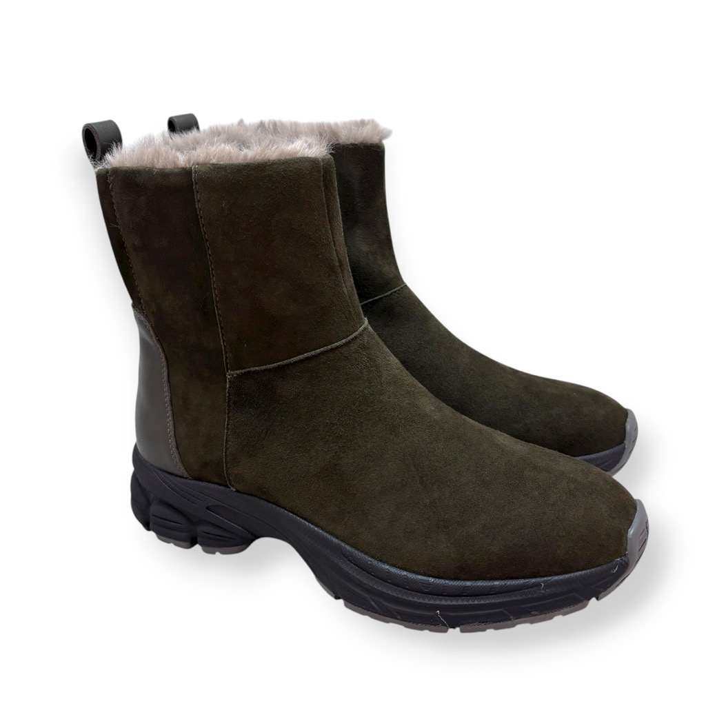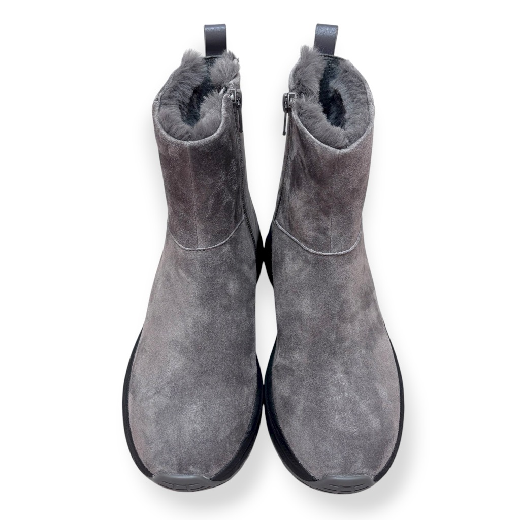 ファーライニングで温かく雨でも履けるジップアップのショートブーツ。アッパーは柔らかい起毛素材の牛革と羊革のコンビ。撥水加工してあり少々の雨降りでもお使いいただけます。内側ファスナーで脱ぎ履き簡単。インソールには取り外しできるカップインソールを採用。お好みのインソールと取り換えも可能。ソールはグリップがよく効き滑りにくくクッション性に優れたスポーツソール仕様。軽量でノンストレスの履き心地。おしゃれも犠牲にしない暖かく実用性に富んだブーツです。