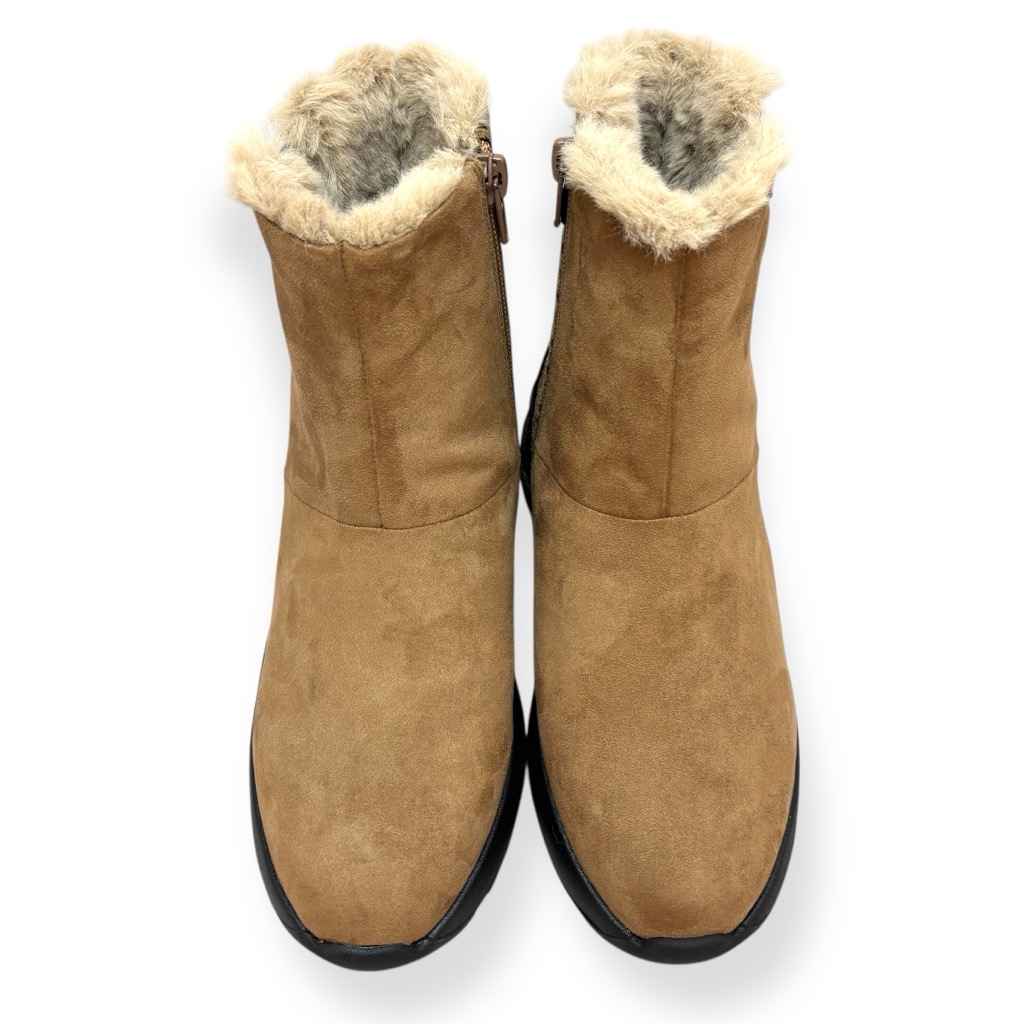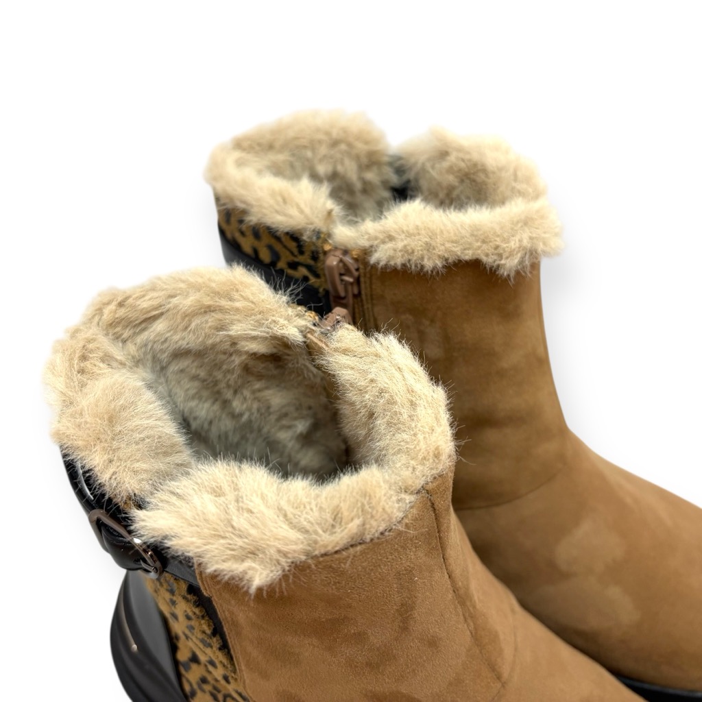 晴雨兼用の内側ファスナー付き厚底内ボアショートブーツ。アッパーは柔らかく雨降りでも使える合成繊維と合成皮革。内側がボアの仕様になっており暖かいです。インソールにはクッション入り。ファスナー付きのため脱ぎ履きしやすいです。クッション性に優れたアウトソールで長時間のお出かけも安心。気軽に使える冬の強い味方です。